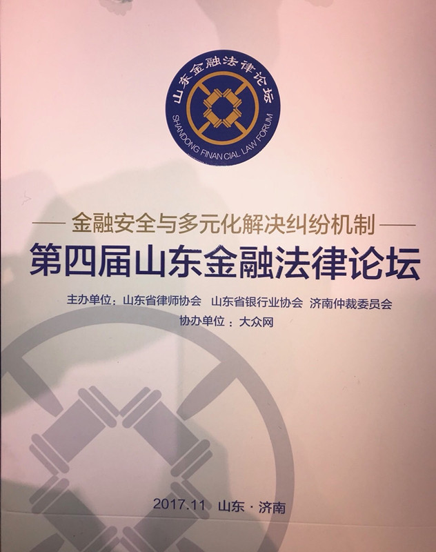 2017年11月24日,张宏志律师参加了山东省第四届金融法律论坛,收获颇丰。这是继前三届成功举办后的第四次盛会,主题是“金融安全与多元化解决纠纷机制”,主要如何针对金融纠纷数量日益增加、标的越来越大、法律关系越来越复杂的国内现状和国际新形势现状而举办的。聆听了大师讲座,收获大受益多启发深,为今后做好金融法律纠纷特别是票据纠纷的代理和解决提供了难得机会。
